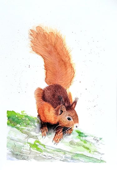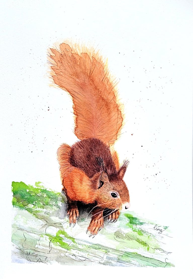 "Red Squirrel" watercolour and ink